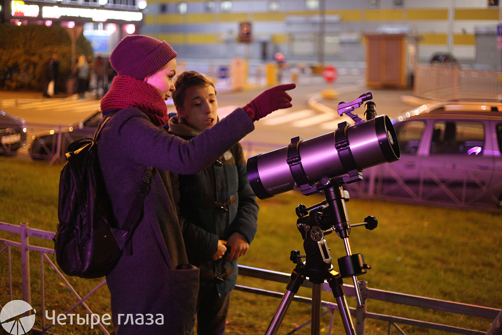 Еще одна удобная возможность посмотреть в телескоп и разгадать тайны небесного свода – участив в днях Открытой тротуарной Астрономии. Эти акции регулярно проводят специалисты магазина оптической техники «Четыре глаза».