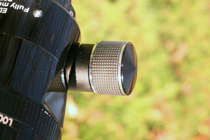 Корпус фокусера покрыт блестящим анодированным напылением, смотрится эффектно. С одной из сторон фокусера находится двойная ручка. Ручка побольше имеет больший шаг хода и позволяет быстро и примерно навести резкость. Меньшая же ручка служит для точной наводки на резкость. Ручки удобные, с приятной мелкой ребристостью, не проскальзывают.
