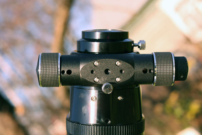На корпусе фокусера вас может заинтересовать ряд винтов, потому что на первый взгляд они ничего не держат. На самом деле они регулируют соосность фокусера с оптической осью объектива.