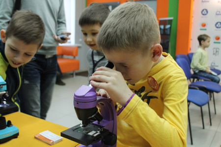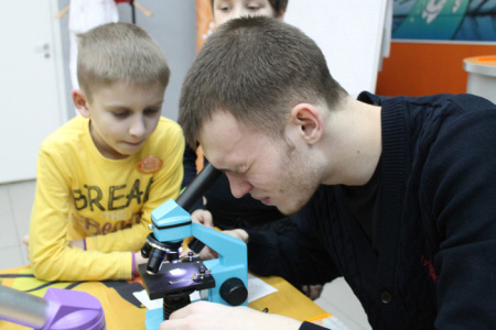 Микробиологами все участники смогли стать благодаря сети магазинов «Четыре глаза»: мы подготовили множество интересных микропрепаратов, которые буквально не успевали менять, чтобы участники понаблюдали как можно больше увлекательного в микроскопы. Гости узнали, как выглядят на самом деле шерсть собаки, сахар, натуральный йогурт, иголка сосны, спинной мозг и многое-многое другое.