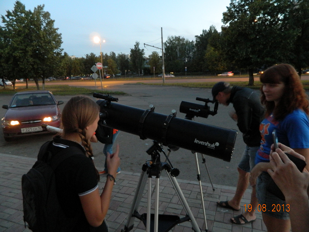 На ДОА все желающие могли изучать звезды и планеты d телескопы Levenhuk и Bresser. Ясная погода позволила наблюдать изумительно яркую Луну, а также другие космические объекты.